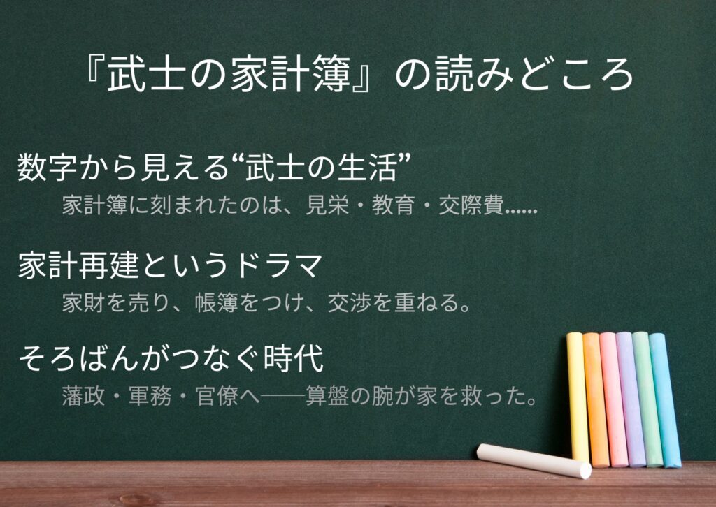 武士といえば威厳ある存在のように思いがちですが、実際には赤字家計に頭を悩ませ、身分制度に縛られながらも日々をやりくりして生きていた──そんな「生活者」としての姿が静かに描かれています。