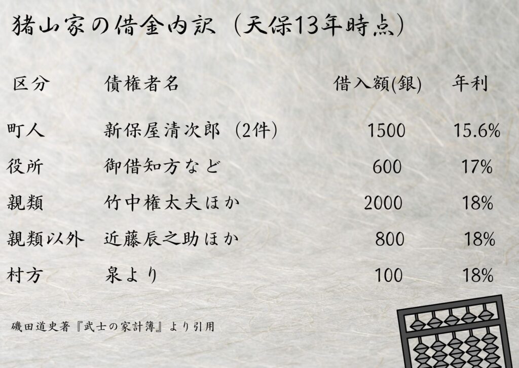 とくに猪山家のように、藩の財政を預かる御算用者の家が、その実態では赤字で苦しんでいたという事実には、思わず驚かされます。