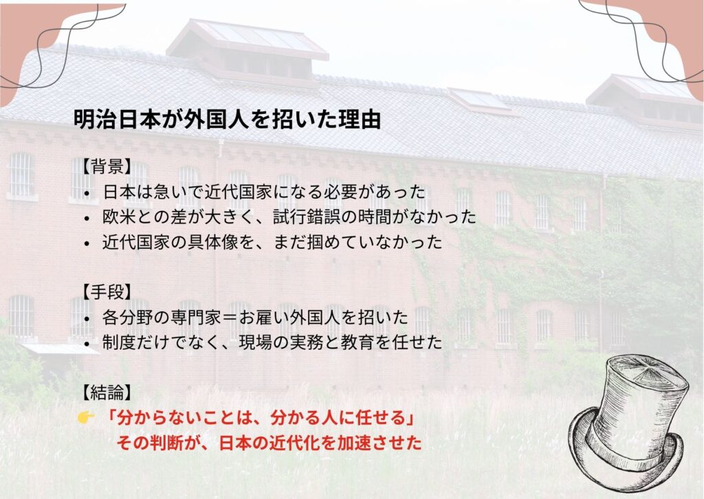 “すでに近代を経験している外国人に来てもらって、教えてもらおう”。